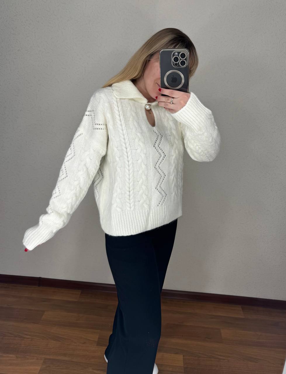 Довжина кофти 65, довжина рукава 57 см від шва