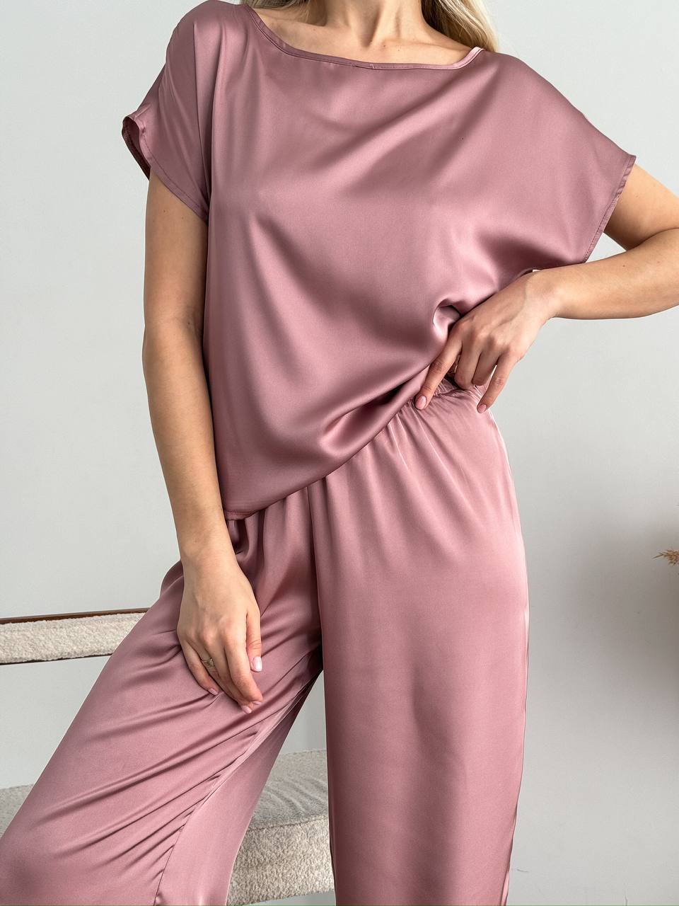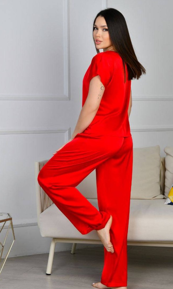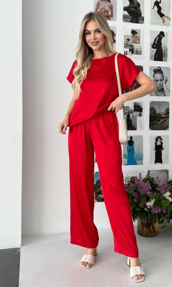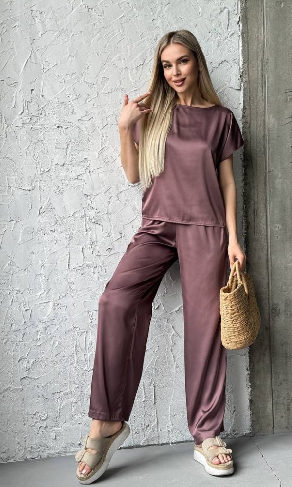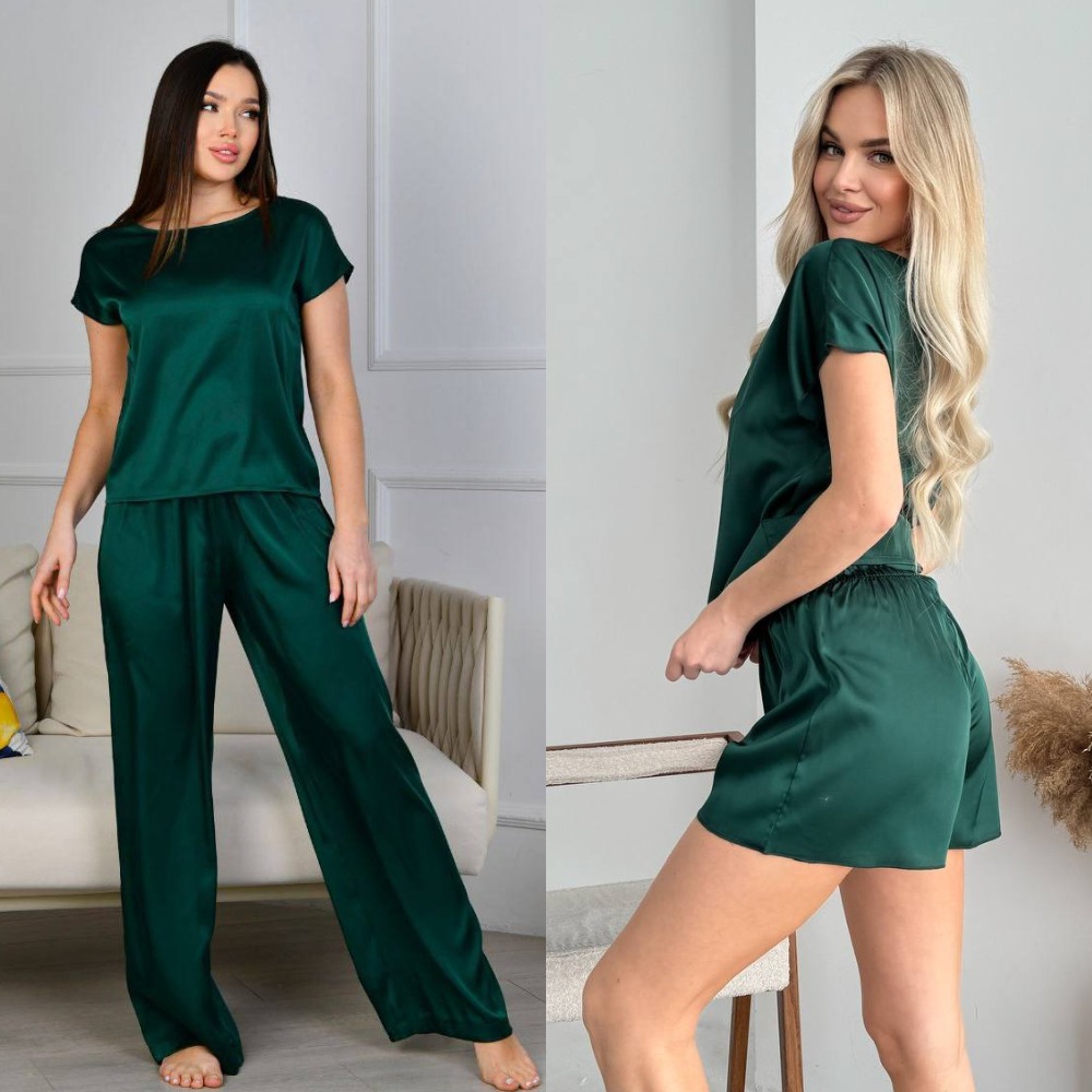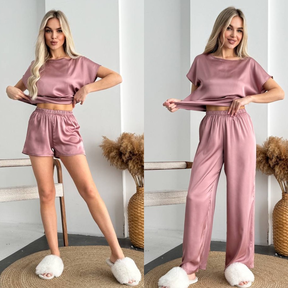 Комплект жіночий 3-ка, шовковий, від 42 до 52 р, універсальна піжамаКомплект жіночий 3-ка, шовковий, від 42 до 52 р, піжама футболка, шорти та брюки прямого силуету, універсальний, П-86/400