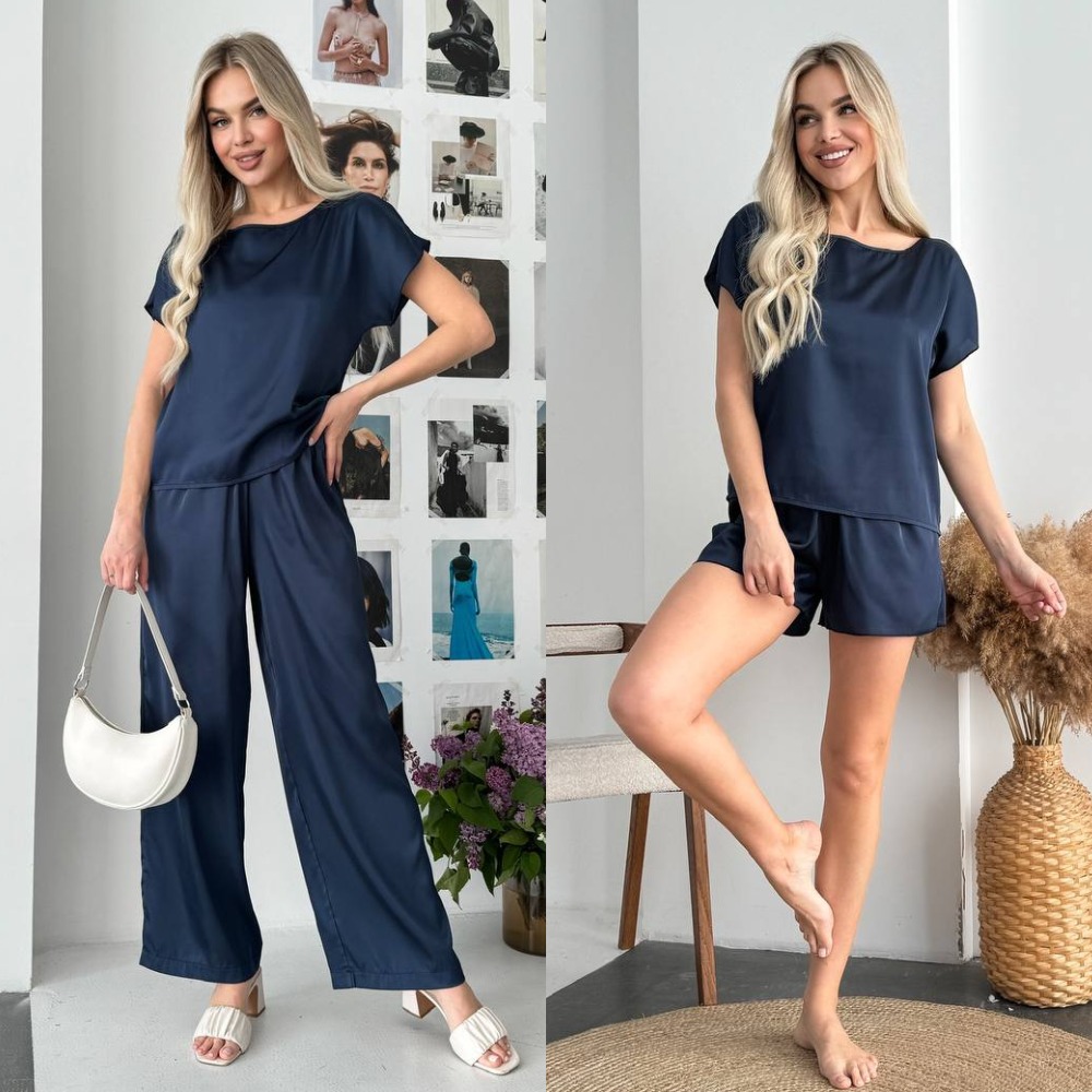 Будьте першим, хто залишив відгук на “Комплект жіночий 3-ка, шовковий, від 42 до 52 р, піжама футболка, шорти та брюки прямого силуету, універсальний, П-86/400”