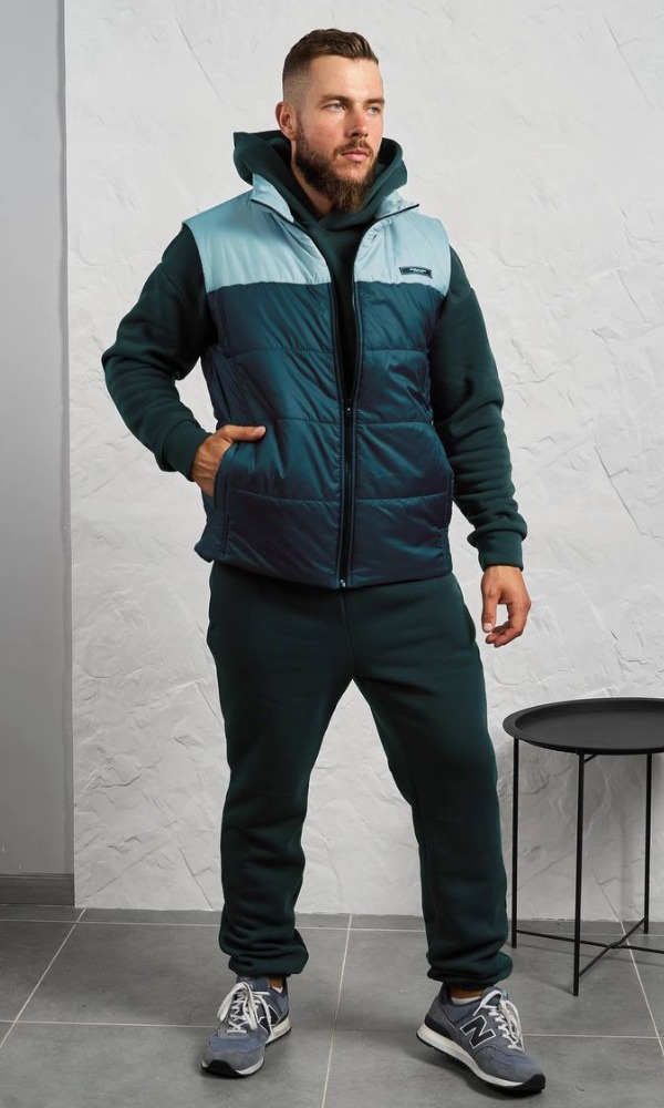 ЖИЛЕТ стьобаний синтепоном, на підкладці з плащової тканини, застібається на блискавку, має дві бічні кишені, на грудях прикрашений нашивкою