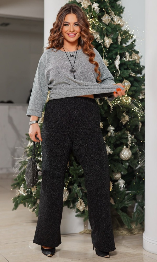 Костюм жіночий брючний, від 50 до 60р, блуза трикотаж люрексКостюм жіночий брючний, великого розміру, від 50 до 60р, трикотаж люрекс, стильний, П-7225/187