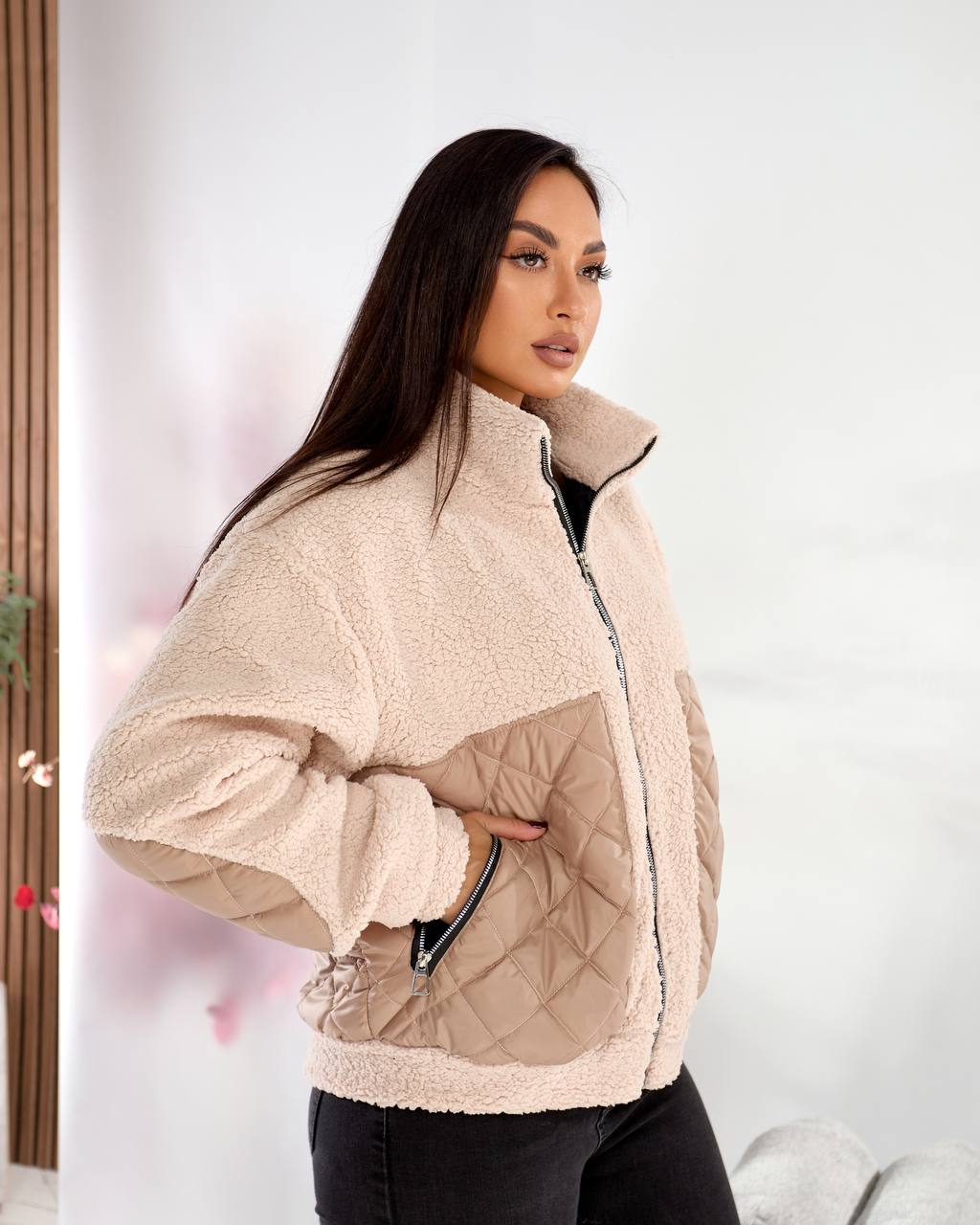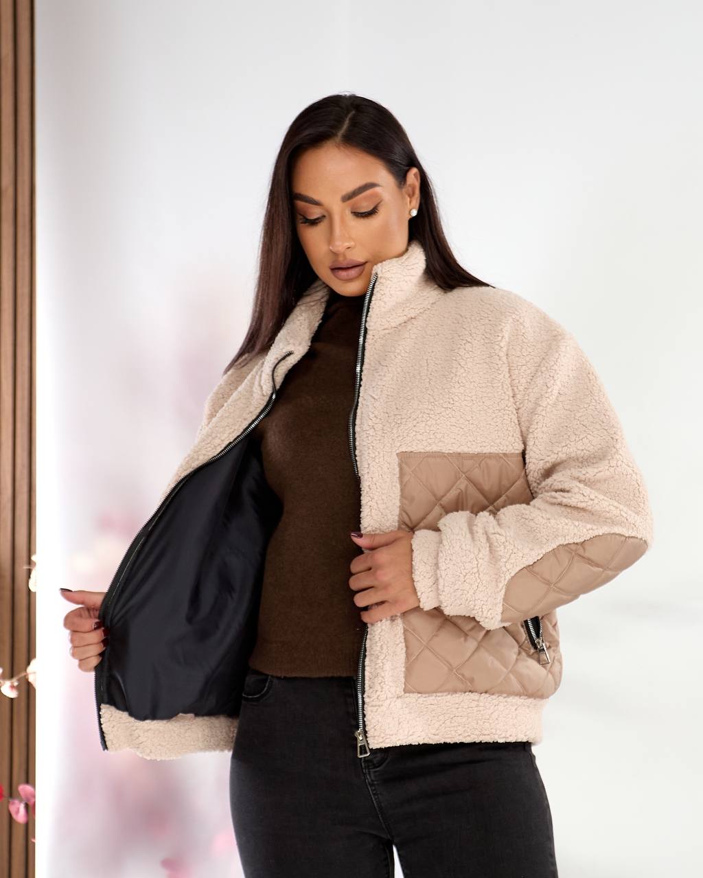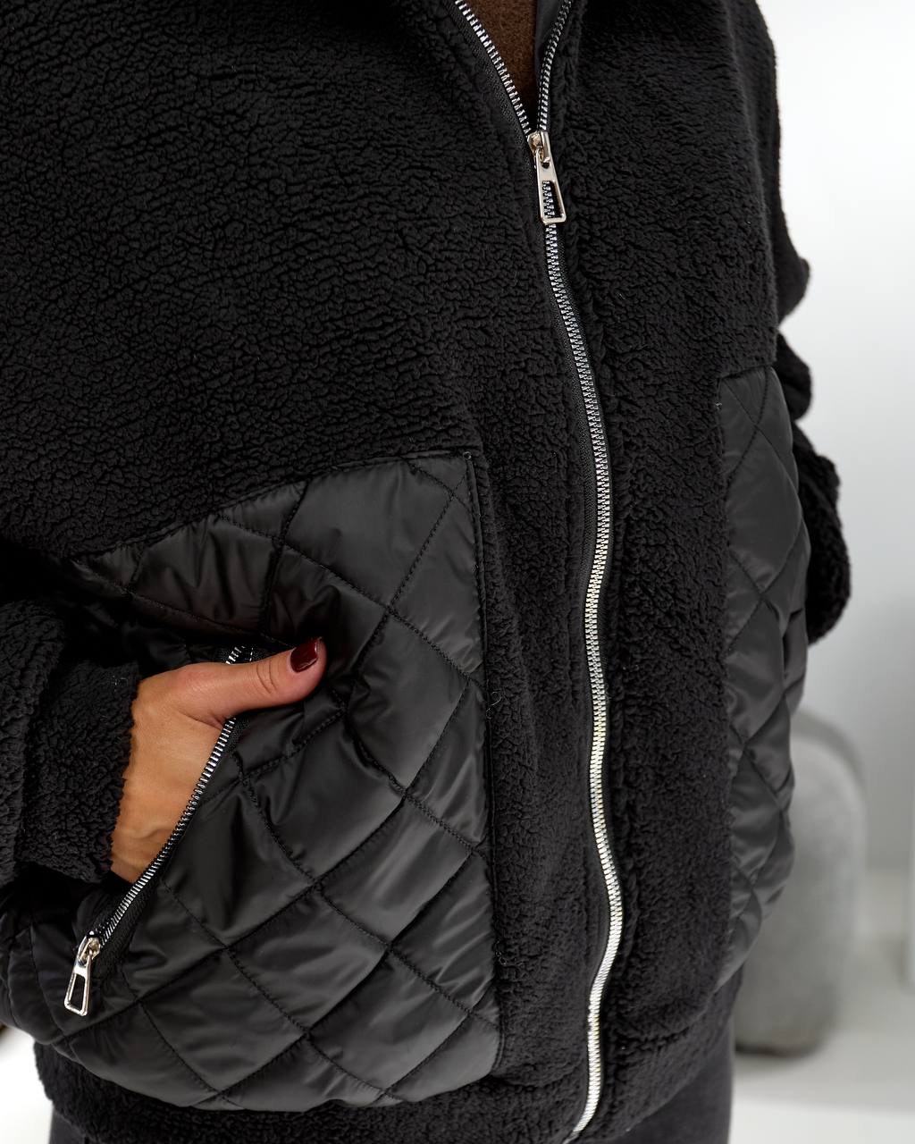 Тканина стьобана плащівка та штучне хутро тедді