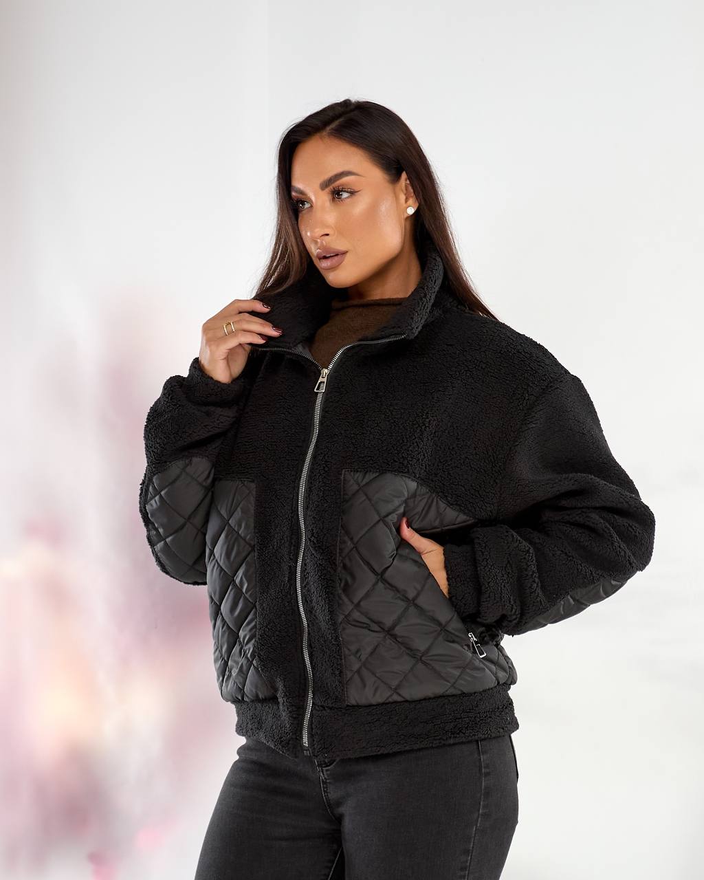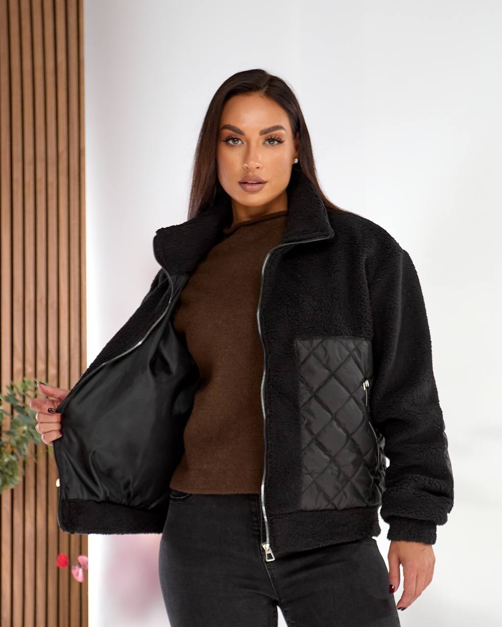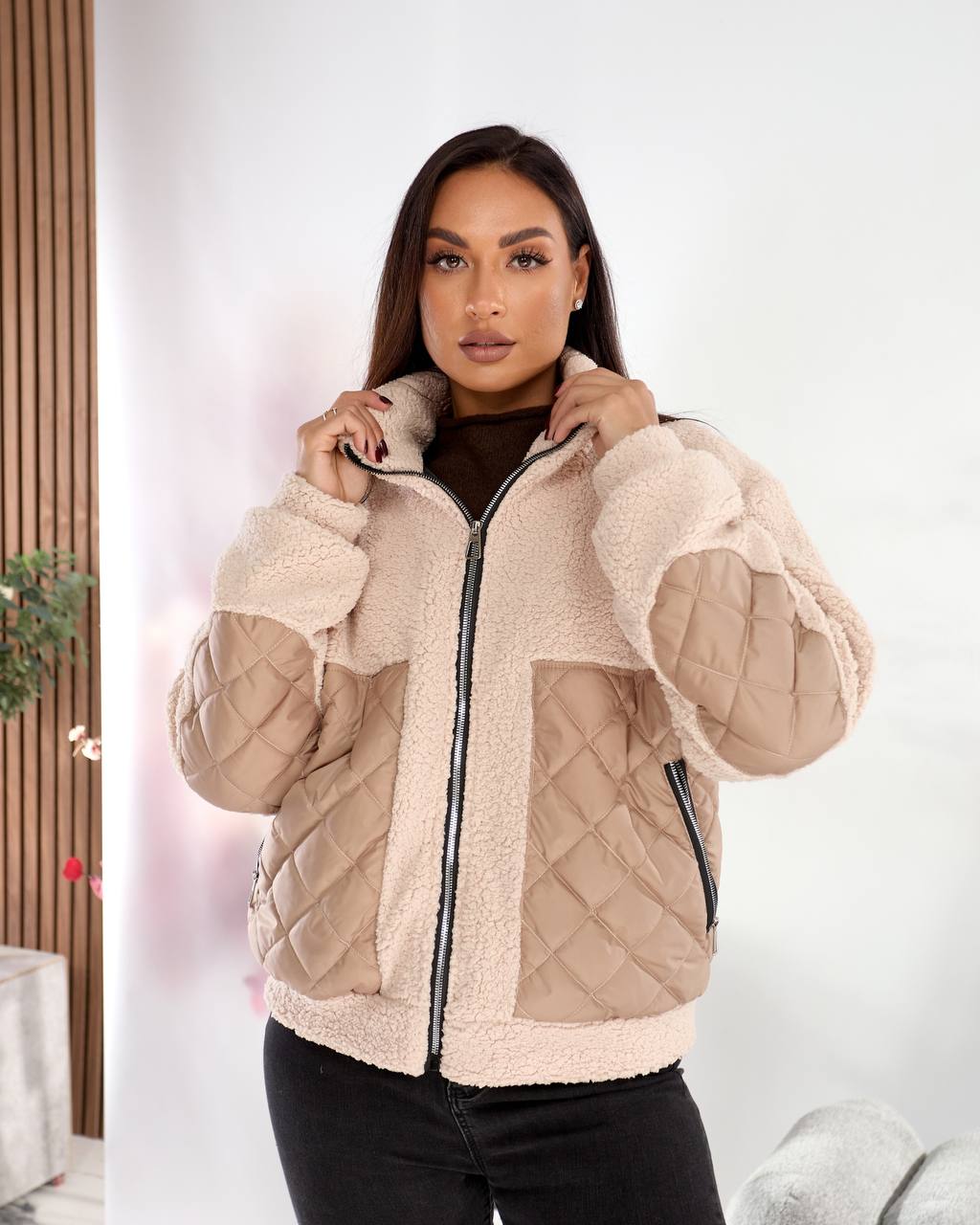 Тканина стьобана плащівка та штучне хутро тедді