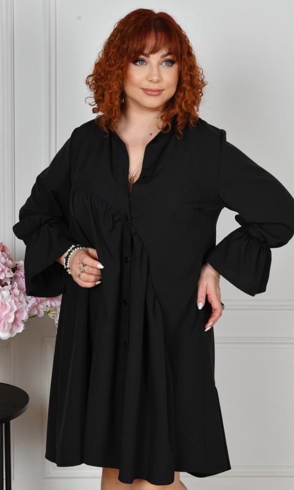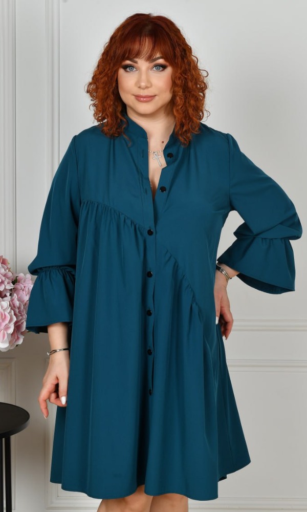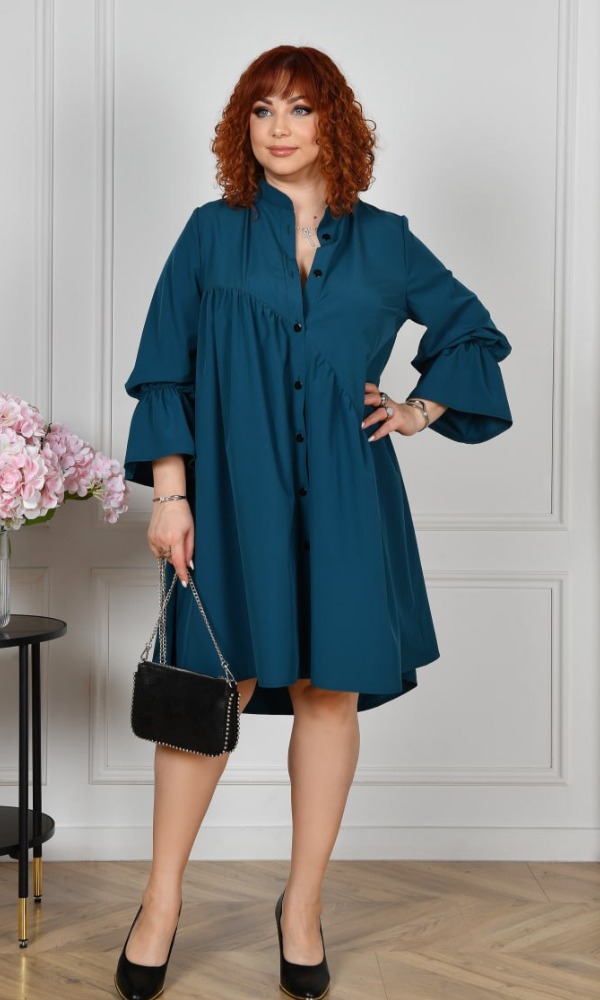 Довгі рукави зібрані на гумку з воланами по низу. Попереду — застібка на гудзиках по всій довжині планки.