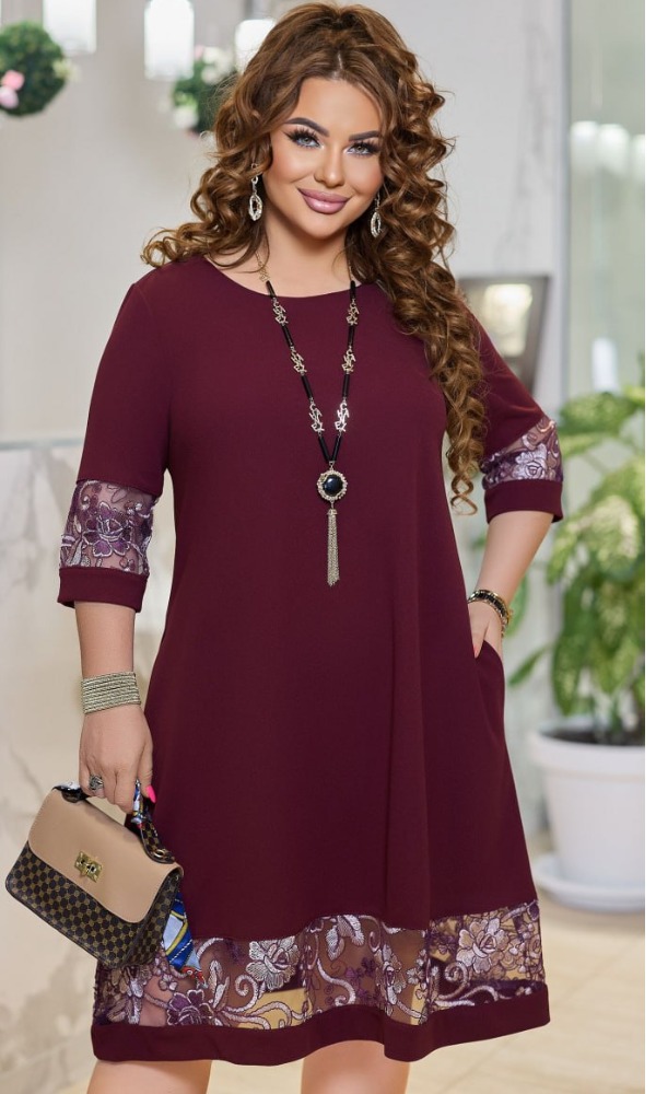 Тканина: креп дайвінг, вставки з мереживної вишивки на сітці