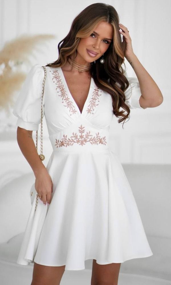 Сукня з об’ємними рукавами та розкльошеною спідницею