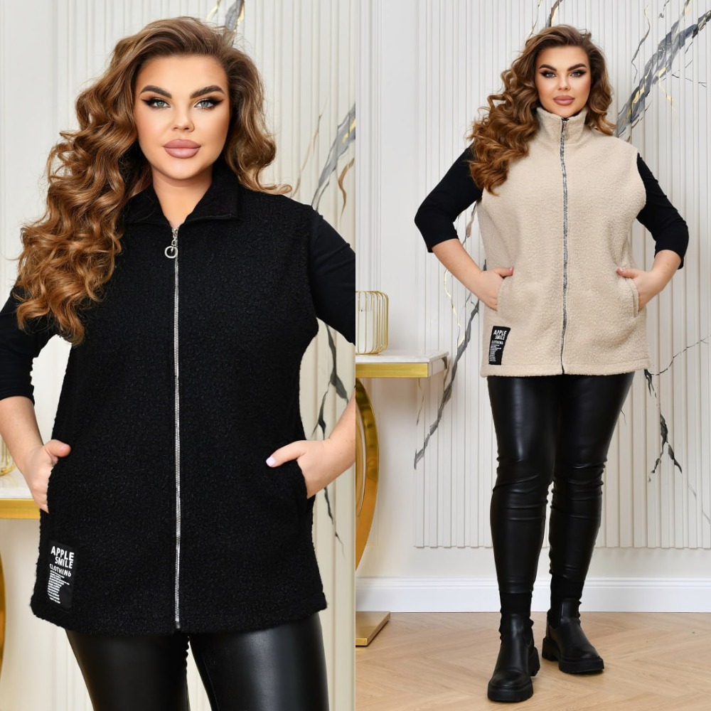 Горловина з високою стійкою. Застібається на блискавку. ❗️❗️❗️Підкладу немає. Жилетка декорована якісною нашивкою.